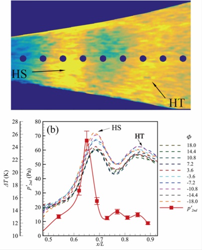 一般认为高超声速边界层中的气动加热来自于壁面摩擦力的剪切做功。李存标">李存标课题组运用多种实验手段在北京大学高超声速静风洞中展开实验,并结合理论和计算方法,发现由包括胀压粘性在内的胀压做功过程会在转捩前期产生剧烈的气动加热,其大小可能超过完全湍流状态下的气动加热值。而这一过程是与由二次模态波引起的高频压缩---膨胀过程紧密相关。这一重要发现告诉人们,在高马赫数流动中,胀压做功特别是胀压粘性系数的作用不可忽视。准确评估其大小对于高超转捩的理论分析和计算建模具有极为重要。