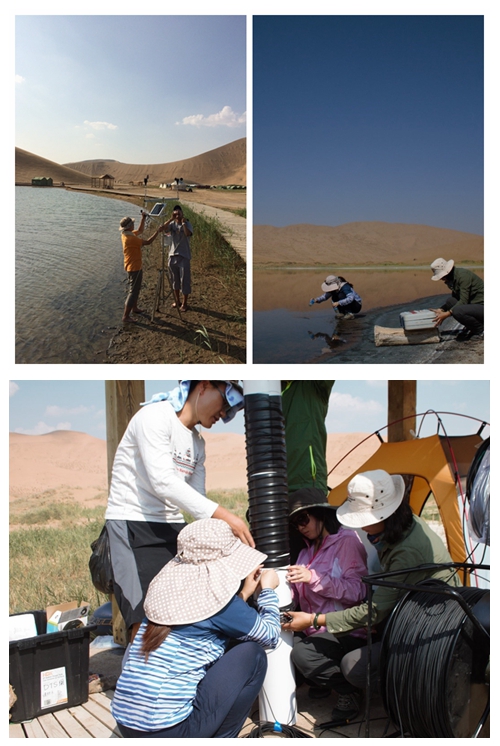 2016年8月1日至15日,北京大学水科学研究中心(简称水中心)刘杰">刘杰研究员带领研究团队一行8人,前往内蒙古阿拉善盟巴丹吉林沙漠开展野外工作。主要工作内容是根据地表水和地下水具有温度差异的属性,利用高分辨率分布式光纤测温技术对巴丹吉林沙漠代表性湖泊进行实地监测,判断补给沙漠湖泊的地下水来源,认识沙漠湖泊成因,保护沙漠水文生态系统。