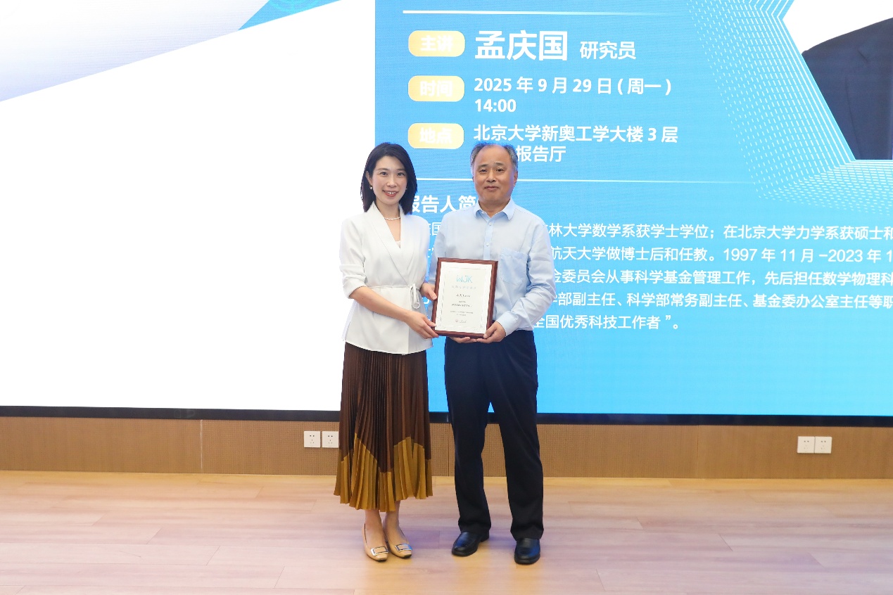 最后,欧阳晓玲书记代表学院为孟庆国研究员颁发讲座纪念奖牌以示感谢。