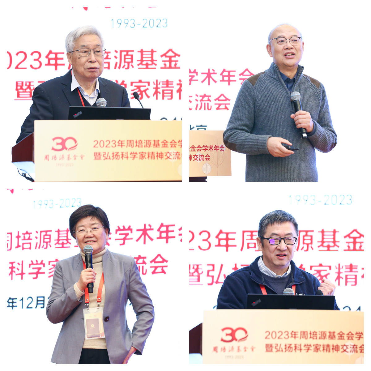 (从左至右、从上至下:欧阳钟灿院士、王恩哥院士、郑晓静院士、何国威院士)