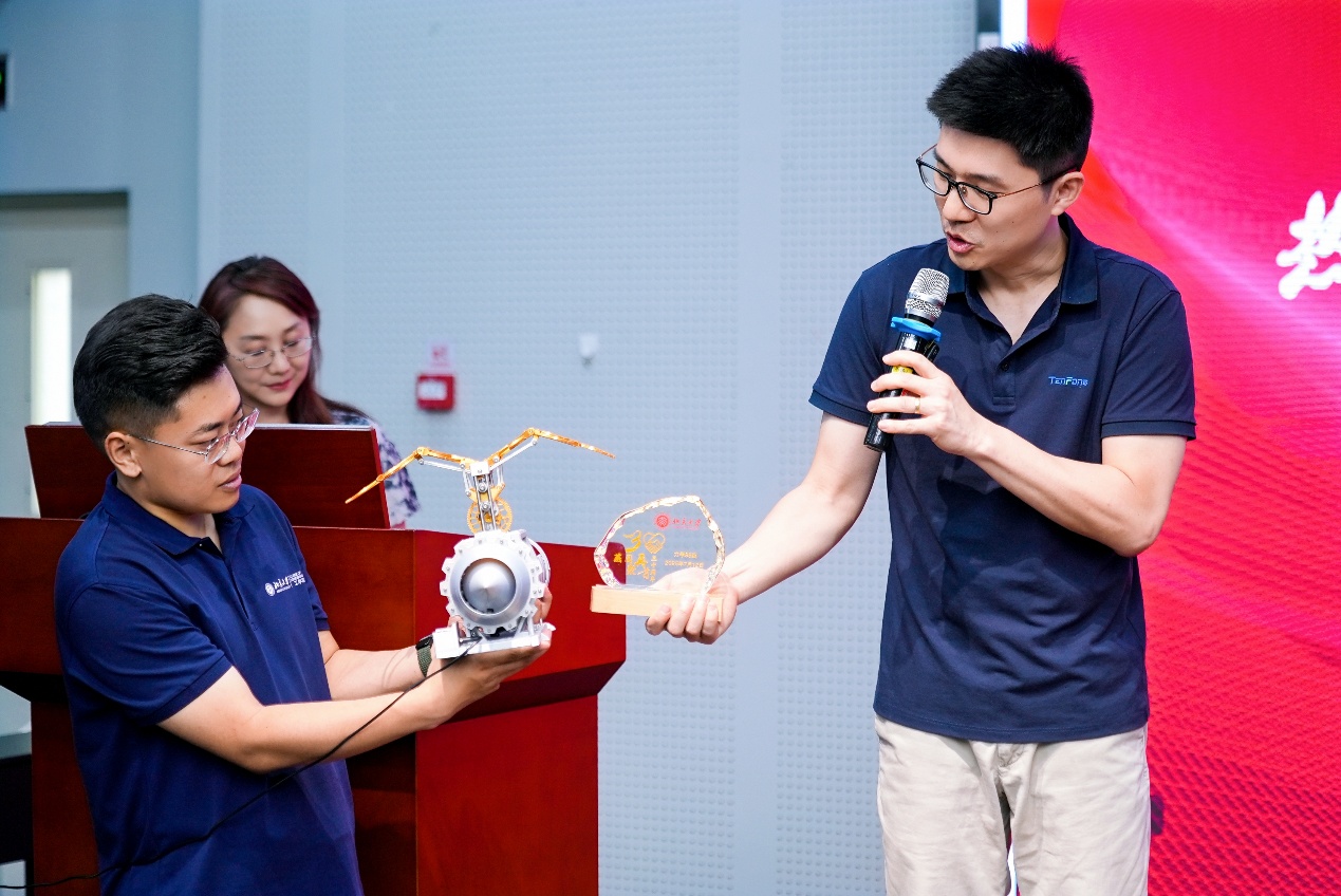 1995级校友以实际行动反哺母校:不仅设立“力学 95级校友奖学金”激励后学,还精心设计了寓意“力学之美、腾飞之愿”的机械翅膀装置赠予学院。捐赠仪式上,北京大学工学院党委书记陈威为校友代表颁发捐赠证书,北京大学力学与工程科学学院副院长张通代表学院接受礼物,现场掌声不断,温情满溢。