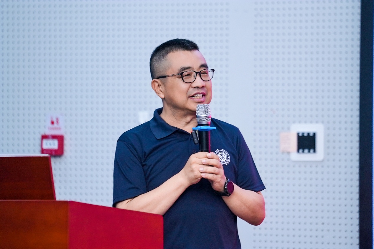 北京大学校友工作办公室主任、力学系87级院友李文胜寄语师弟师妹。他回忆起1995级院友入学时的青涩模样,感慨时光飞逝的同时,也分享了北大校友会的工作成果——从建立校友数据库、打造 “校友之家” 活动空间,到推动全球校友联络,始终践行“校友在哪里,北大就在哪里”的理念。他表示,院友们的成就是北大的骄傲,希望大家常回燕园看看,让母校成为大家永远的精神港湾。