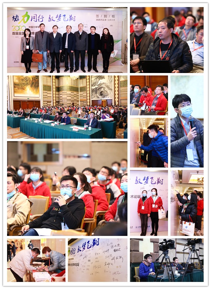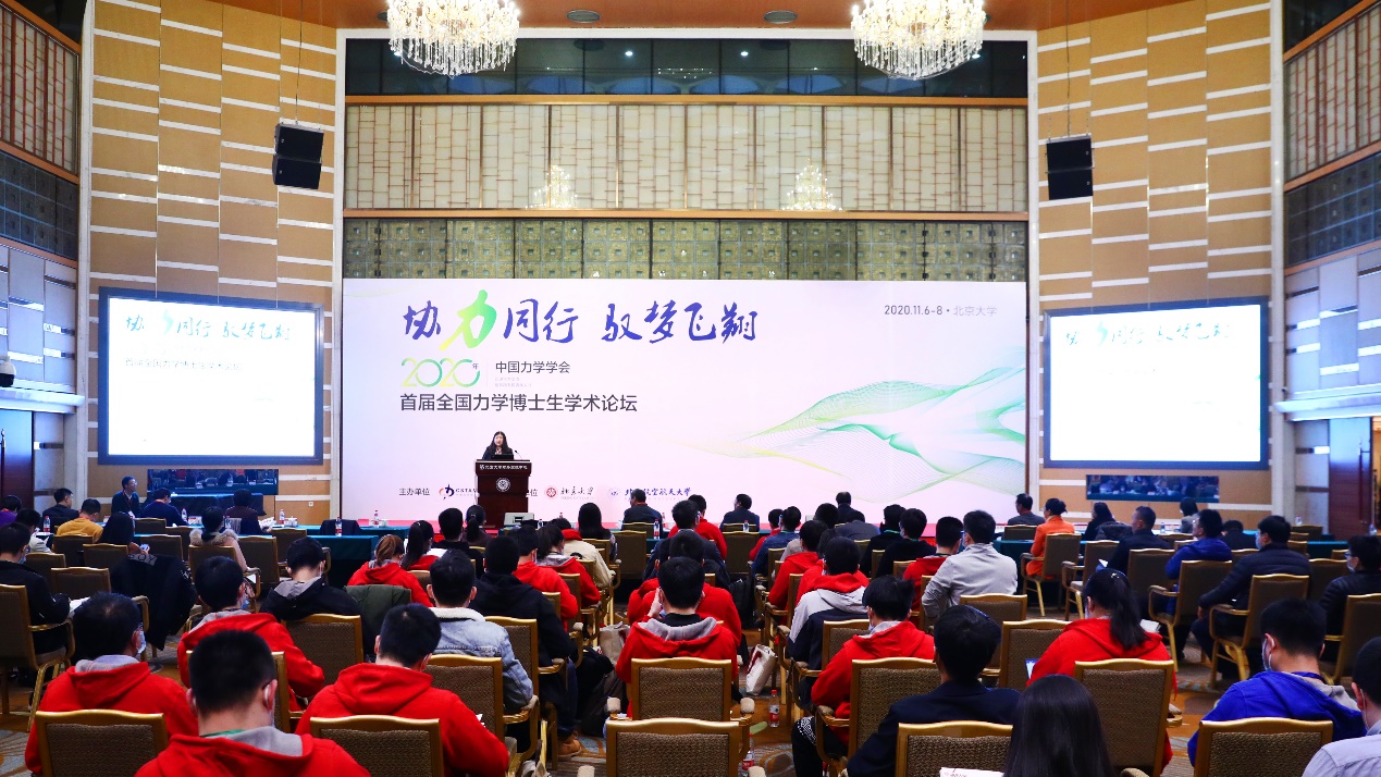 2020年11月6日至8日,由中国力学学会主办,北京大学工学院力学与工程科学系和北京航空航天大学航空科学与工程学院联合承办的“2020年中国力学学会首届全国力学博士生学术论坛”在北京大学举行。本届论坛以“协力同行、驭梦飞翔”为主题。论坛由大会邀请报告、专题邀请报告以及普通报告构成,由于疫情原因,本次采取线上和线下相结合的模式,设有线下5个分论坛、线上10个分论坛。本次论坛共收到来自国内各高校的379篇博士生报告投稿,经论坛程序委员会的评审,最终录取了线下会场110篇、线上会场182篇博士生报告。另外,本次论坛邀请到4位力学领域的著名学者作大会特邀报告,15位青年教师作专题邀请报告。此次论坛使参会师生了解了力学学科前沿领域的最新进展和发展趋势,同时展示了力学博士研究生们在相关领域的最新研究进展和成果,增进了广大博士研究生之间的学术交流。
