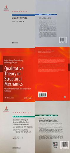 北京大学工学院力学与工程科学系教授王大钧与王其申、何北昌合作撰写的专著“Qualitative Theory in Structural Mechanics–Qualitative Properties and Existence of Solutions”由著名科技图书出版公司施普林格(Springer)出版,该书为此前由王大钧、王其申、何北昌合著《结构力学中的定性理论》修改重组后的英文版。中文版《结构力学中的定性理论》已于2014年2月由北京大学出版社纳入“中外物理学精品书系”出版,总结了以北京大学力学系师生为主的多位作者近40年的重要研究成果,是这个研究方向中的第一部专著。英文版由北京大学出版社于2020年9月出版,海外版于2019年9月由施普林格出版社和北京大学出版社联合出版。